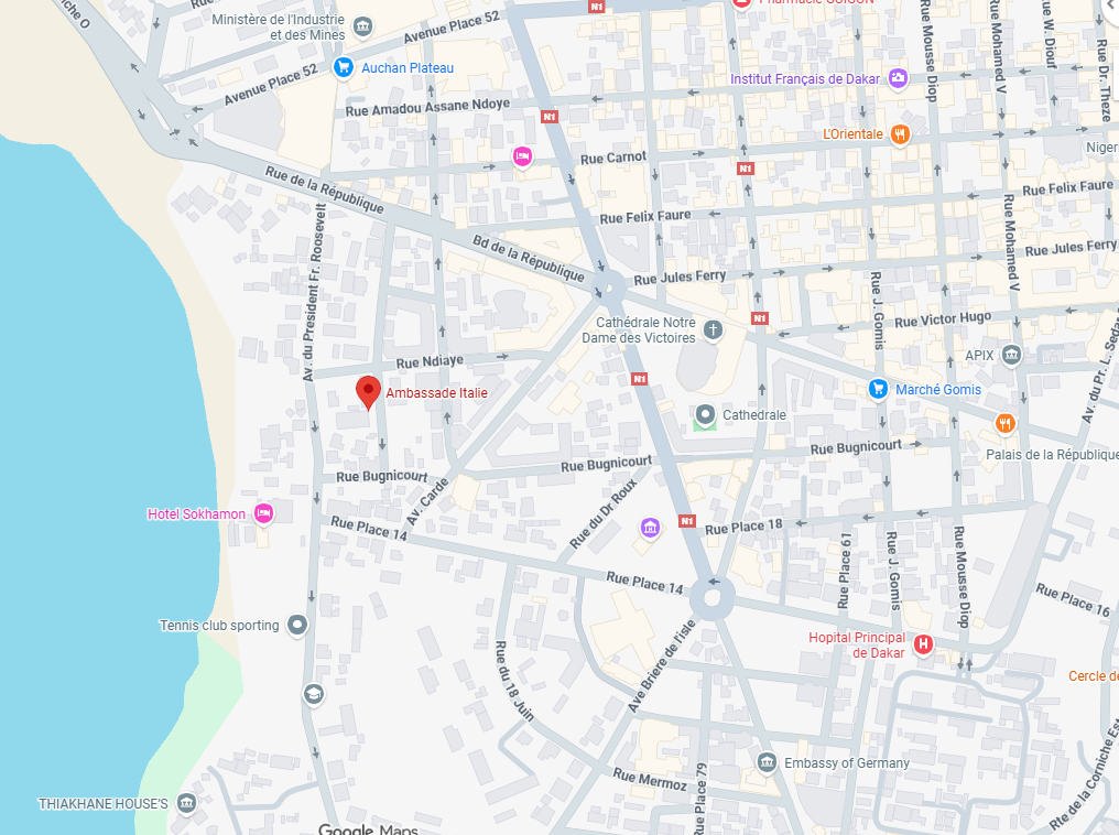 Localizzazione dell’Ambasciata d’Italia a Dakar